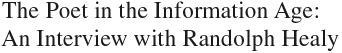 (This interview was conducted by e-mail. The questions were asked by Robert Archambeau, in Chicago, and answered by Randolph Healy in Dublin)